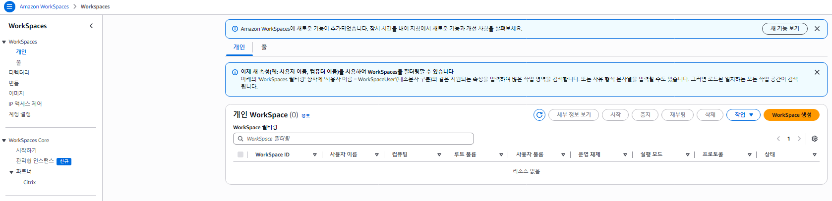- AWS 관리형 VPC : WorkSpaces 인스턴스가 위치한 네트워크(AWS 관리)