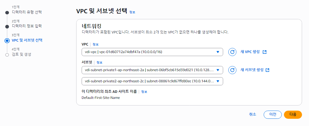 AWS Directory Service에 등록되지 않은 디렉터리에서는 "10-6"에서 생성한 디렉터리를 선택