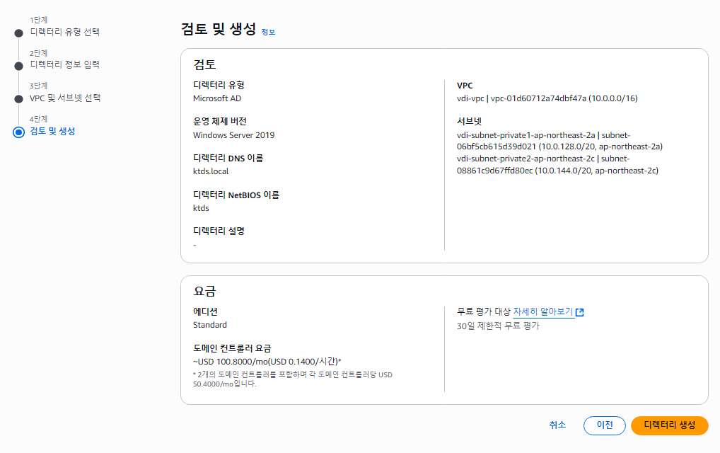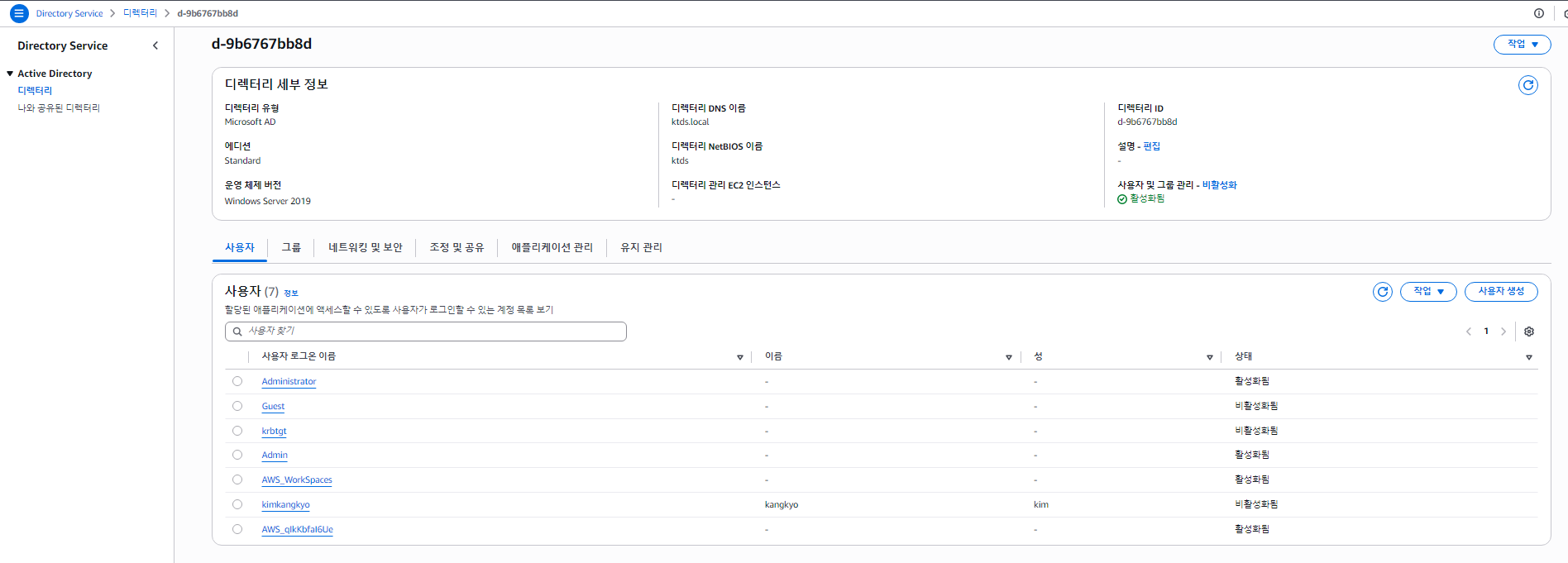 진행 절차 : AWS Directory Service(AD 서버) 생성 → Directory Service User 생성 → Amazon WorkSpaces와 Directory Servie 연결 → WorkSpaces VDI 생성