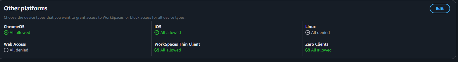- 설정 경로 WorkSpaces > Directories > '해당 Directory' > [Edit] > 'Web Access 허용'