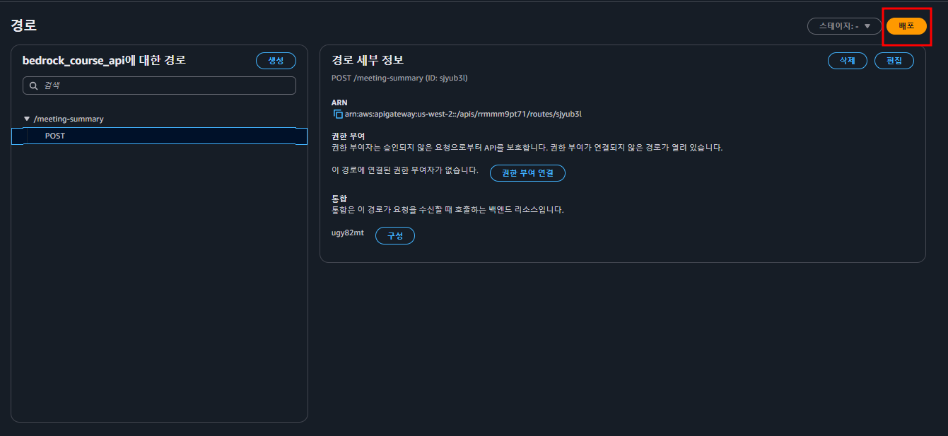 | Bedrock | 회의록 요약을 위해 사용하는 Claude 모델을 사용하며, 해당 모델은 us-west-2 지역에서만 제공하므로 해당 지역에서 인프라를 구성한다. |