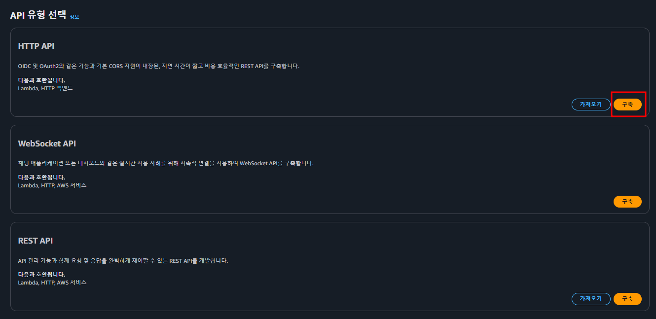 API Gateway가 호출되면 람다함수를 호출되도록 진행
