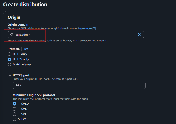 7) Custom SSL certificate - optional = "버즈니아 북부에서 만든 ACM 적용"