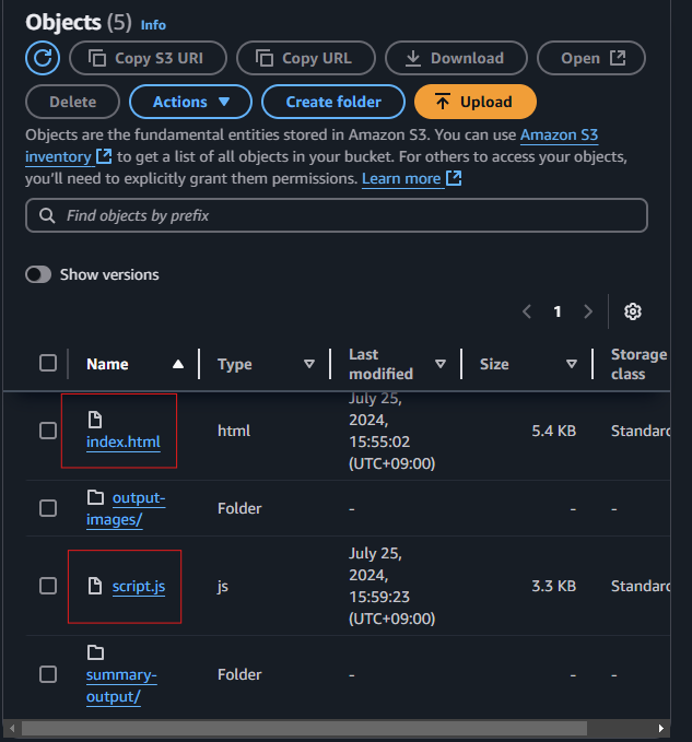 3) 위의 파일을 확장자 변경이후 S3에 넣어주기